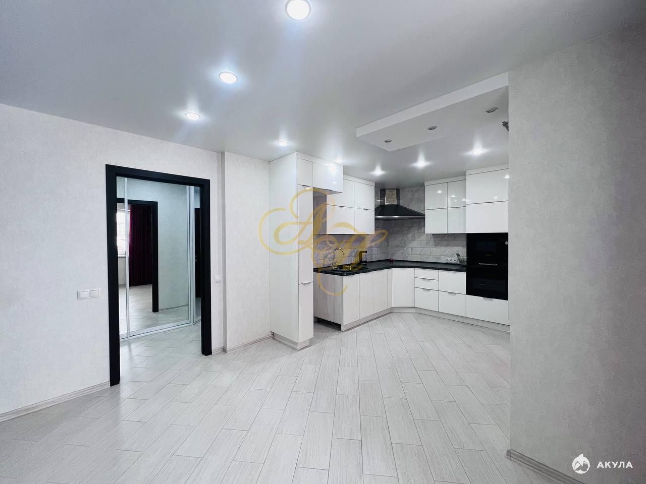 В квартире две спальни, просторная кухня-гостиная, множество встроенных шкафов для хранения, качественные окна и двери